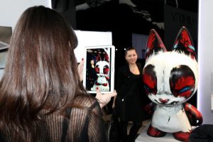 ▲2014년 F/W 뉴욕 패션위크의 삼성 패션 커넥티드 체험존 방문객이 갤럭시 노트 프로를 통해 스케치를 받고 기념촬영한 모습