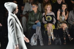 ▲2014년 F/W 뉴욕 패션위크에서 진행된 레베카 밍코프 패션쇼에서 갤럭시 노트 3로 사진을 찍고 있는 배우 빅토리아 저스티스(사진 맨 오른쪽)