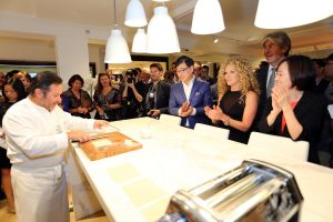 ▲ 삼성 클럽드쉐프 대표 쉐프 '미셀 트로와그로'가 삼성전자 생활가전 제품들을 이용해 행사 참가자들에게 요리를 선보이고 있다.