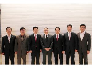 사진 왼쪽부터 롯데카드 고원석 본부장, NH농협카드 신응환 사장, KB국민카드 김덕수 사장, 삼성전자 홍원표 사장, 삼성카드 원기찬 사장, 신한카드 이재정 부사장, 현대카드 원석준 본부장)