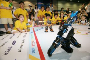 o 여러 대의 지능형 로봇이 댄스를 선보이고, 두 대의 미니 로봇을 직접 조종해 볼 수