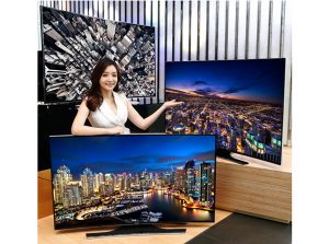 ▲ 삼성전자 모델이 서초동 딜라이트에서 신제품 HU7200을 선보이는 모습.