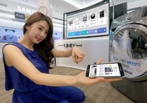 '삼성 스마트홈'은 냉장고, 세탁기, 에어컨, 오븐, 로봇 청소기 등의 생활가전 제품과 조명을 비롯한 생활 제품을 스마트폰, 웨어러블기기, 스마트 TV 등으로 언제 어디서든 편리하게 사용 할 수 있는 홈 솔루션 서비스이다.