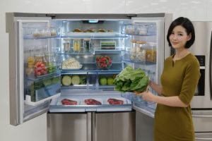 ▲ 삼성전자 모델이 삼성전자 수원사업장 생활가전동 프리미엄 하우스에서 미세 정온 기술로 식품의 신선함은 물론 영양소도 유지하는 셰프컬렉션 냉장고를 소개하고 있다.