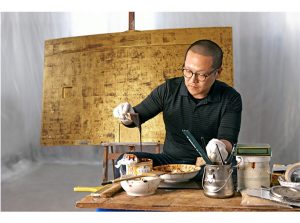 ◇ 유명 작가와 협업해 금박을 입힌 TV 뒷면에 옻칠 작업 디자인