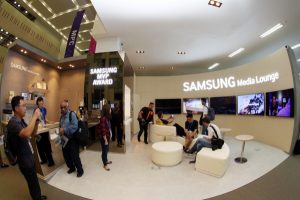 지난 15일 인천아시안게임 메인 프레스센터 내에 문을 연 '삼성 라운지'는 국내·외 아시안게임 취재 기자들에게 쾌적한 취재 환경을 지원하기 위해 커브드 UHD TV, 갤럭시 알파, 갤럭시 탭S 등 삼성의 최신 기술이 탑재된 제품을 제공한다.