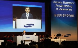 ▲삼성전자는 14일 서울 사초사옥 다목적홀에서 주주, 기관투자자 등 400여명이 참석한 가운데 제 45기 정기 주주총회를 개최했다.