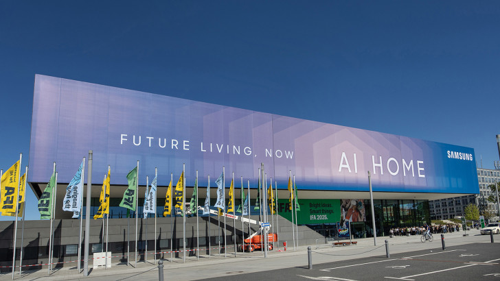 ▲ 오는 5일부터 9일(현지시간) ‘IFA 2025’가 열리는 독일 베를린 ‘메세 베를린(Messe Berlin)’의 ‘시티큐브 베를린(City Cube Berlin)’에 위치한 삼성전자 전시관에서 삼성전자 모델이 갤럭시 S25 FE를 소개하고 있다.