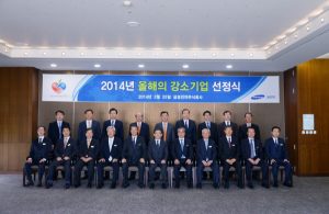 ▲2월 25일 삼성전자가 수원 '삼성 디지털 시티'에서 권오현 삼성전자 대표이사 부회장과 10개 협력사 대표 등이 참석한 가운데 '2014 올해의 강소기업' 선정식을 실시했다.