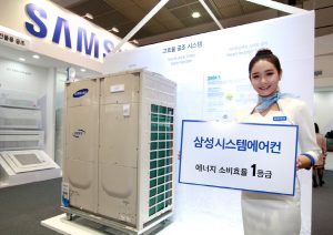 삼성전자는 노트북에서 전력 소모가 많은 시간에 배터리 전력을 사용해 전력 피크치를 낮춰 주는 솔루션, 에너지 소비효율 1등급 인증을 받은 DVM S 제품과 국내 최초 고효율 기자재 인증을 획득한 GHP(가스히트펌프)제품, 실외기 한대로 바닥 난방과 온수를 제공하는 EHS(에코히팅시스템) 등 공공조달시장 최대 이슈인 소비전력절감 문제를 해결할 수 있는 다양한 제품을 선보였다.