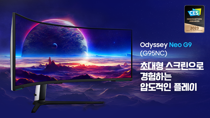 ▲57인치 듀얼 UHD 디스플레이를 탑재한 오디세이 네오 G9은 CES 2023 최고혁신상도 수상하며 화제를 불러일으키기도 했다