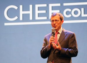 ▲삼성전자가 12일 장충동 신라호텔에서 개최한 '셰프컬렉션 냉장고' 미디어데이 행사에 참석한 주한 프랑스대사 제롬 파스키에(Jerome Pasquier)가 인사말씀을 하고 있다.