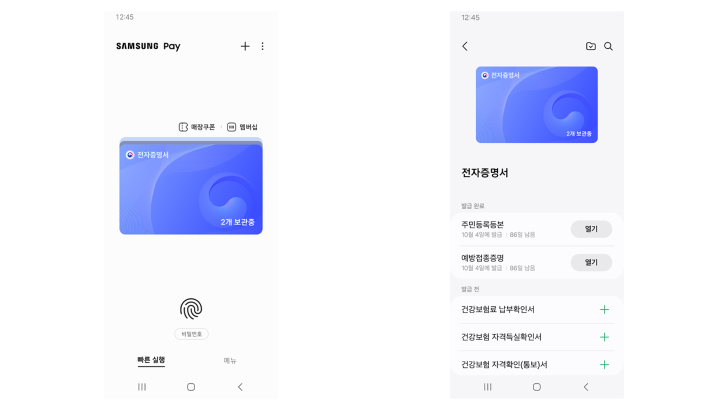 특히, 실물 신분증과 동일한 법적 효력을 가진 국가 공인 모바일 신분증 기능이 더해지면서, 결제를 포함해 그 이상의 기능을 잘 수행할 수 있도록 그에 어울리는 이름으로 바꾸는 것이기도 하다. 삼성월렛 모바일 신분증을 활용하면 국내선 항공 탑승부터 성인인증, 은행 비대면 계좌 개설까지 스마트폰 하나로 간편히 해결된다. 스마트폰을 잃어버려도 갤럭시만의 강력한 보안 기술로 개인정보를 안전하게 보관할 수 있다.