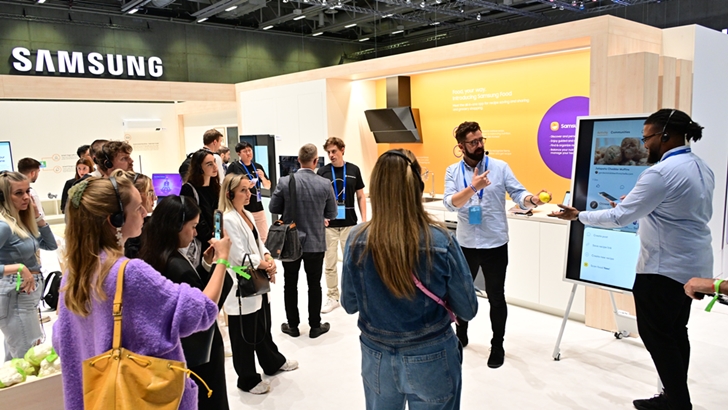 ▲ IFA 2023 삼성 부스 방문자들이 삼성 푸드에 대한 설명을 듣고 있다.