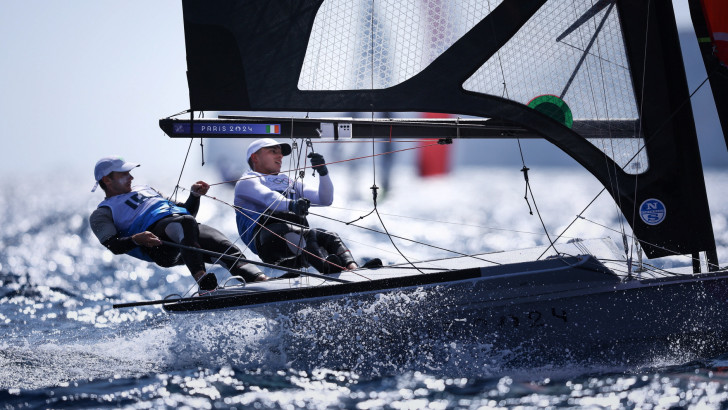 ▲ 타일러 빈돈(Tyler Bindon, 뉴질랜드, 축구)를 비롯한 뉴질랜드 축구 국가대표팀 선수들과 클라우디오 스테치(Claudio Stecchi, 이탈리아, 장대높이뛰기) 선수가 2024 파리 올림픽·패럴림픽 선수촌 내 삼성 올림픽 체험관에서 갤럭시 AI의 통역(Interpreter) 기능을 체험하고 있다.