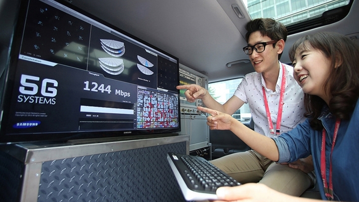 ▲삼성전자는 2013년 세계 최초로 초고주파를 활용한 1Gbps 속도의 5G 통신 시연에 성공했다