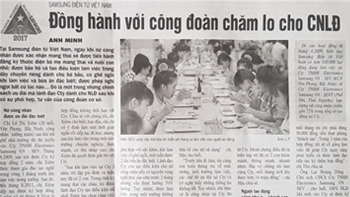 베트남 유력지 ‘노동신문’, 삼성전자 베트남 사업장의 사원 복지를 위한 노력 소개