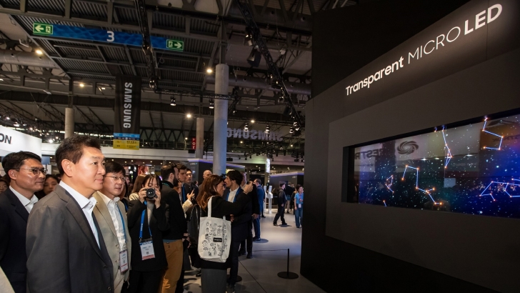 ▲ 유럽에서 최초로 선보인 ‘투명 마이크로 LED’를 보기 위한 구름 인파가 삼성전자 전시장을 가득 메웠다.