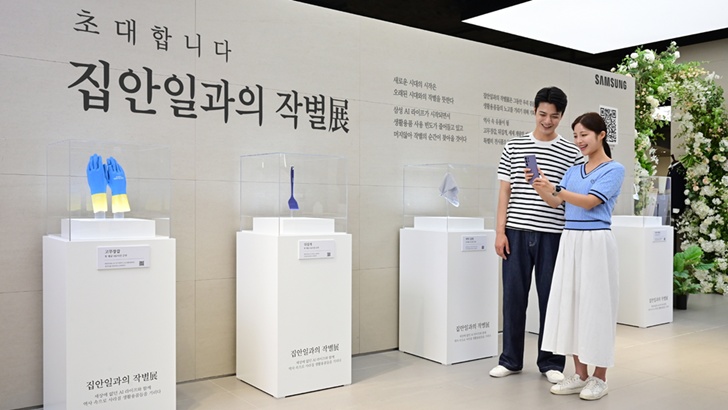 '집안일과의 작별展'에서는 ▲'비스포크 AI 식기세척기'에게 설거지를 양보하고 은퇴한 고무장갑 ▲'비스포크 AI 인덕션'에 요리를 맡기고 떠난 뒤집개 ▲'비스포크 AI 콤보'의 세제량 측정 기능으로 사라진 세제 계량컵 ▲'비스포크 AI 스팀'에게 걸레질을 넘긴 바닥 걸레 ▲'비스포크 에어드레서'에게 옷 먼지 케어를 일임한 돌돌이 등 총 5가지 생활용품이 소개됐다.