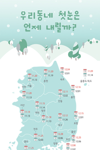 [인포그래픽] 2013년 우리동네 첫눈은 언제 내릴까?