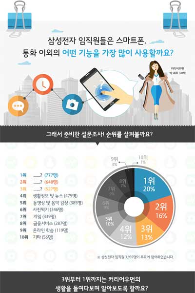 [인포그래픽] 삼성전자 임직원들은 스마트폰의 어떤 기능을 가장 많이 사용할까?