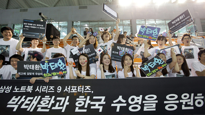 삼성 ‘시리즈9 서포터즈’, 박태환 등 대한민국 수영선수들의 선전 기원 응원 실시