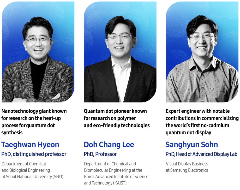 Samsung Newsroom пообщался с ТхэкВаном Хёном, заслуженным профессором кафедры химического и биологического инжиниринга Сеульского национального университета (SNU), До Чанг Ли (Doh Chang Lee), профессором кафедры химического и биомолекулярного инжиниринга Корейского института перспективных научных исследований (KAIST), и СангХёном Соном, главой Лаборатории передовых дисплеев (Advanced Display Lab), подразделения дисплейных решений (VD) в Samsung Electronics, чтобы обсудить, как квантовые точки открывают новую эру дисплейных технологий.