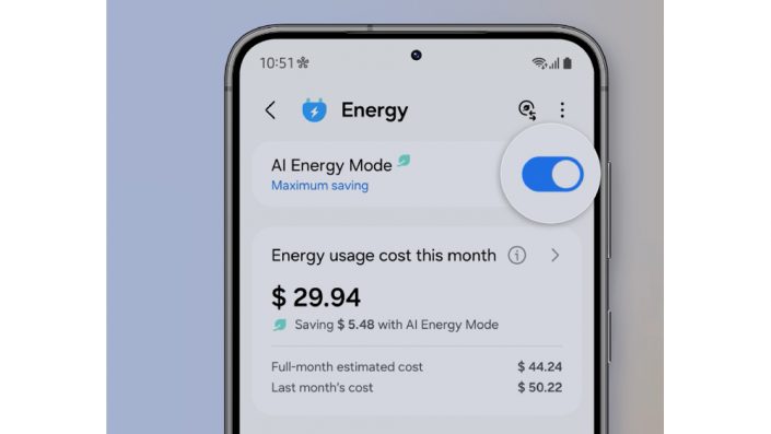 Ahorra energía usando el modo AI Energy Mode de la nueva lavadora Samsung BESPOKE AI de carga superior