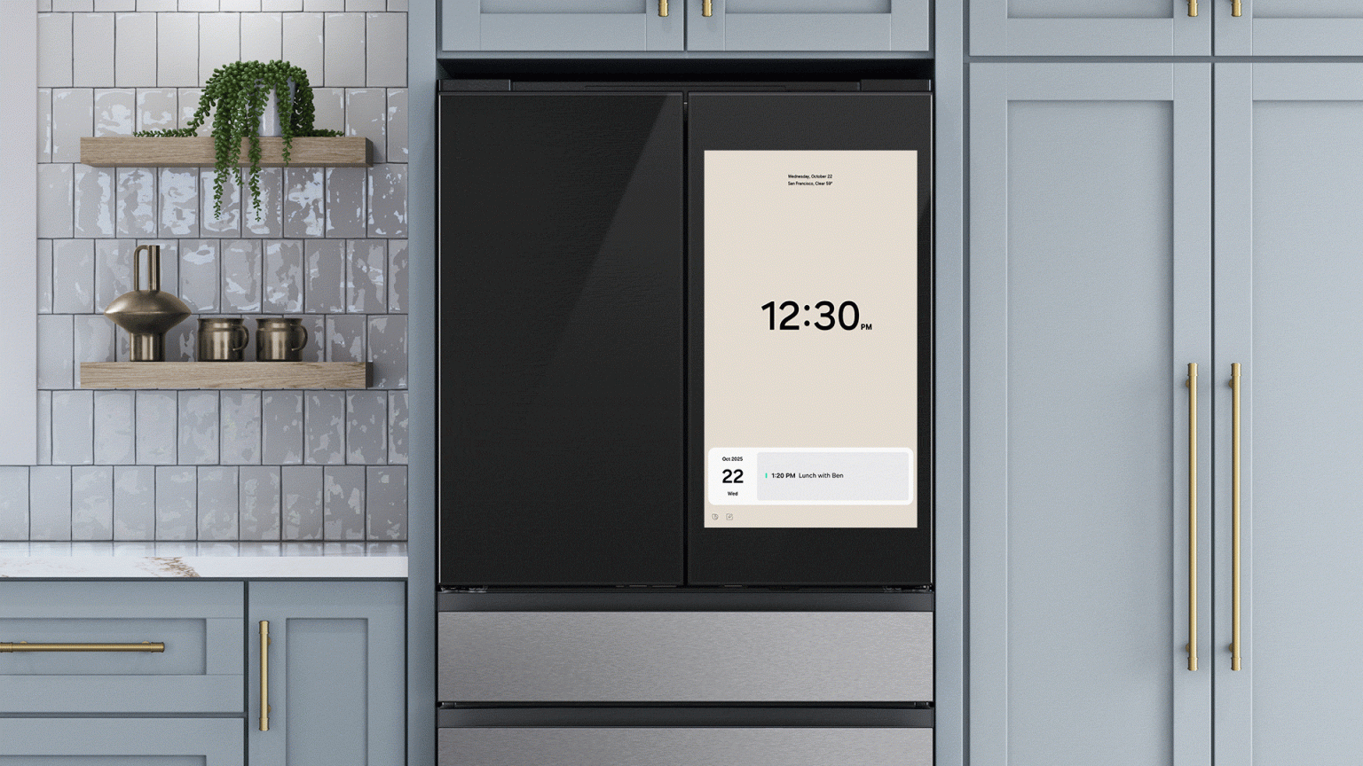El refrigerador Samsung French Door Bespoke AI RM90F utiliza una Pantalla Interactiva de 9 pulgadas para centralizar la gestión de la cocina. Sus principales funcionalidades incluyen:
