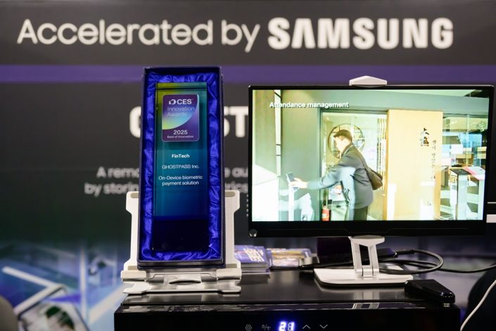 ▲ CES 2025 Best of Innovation Award de GhostPass (categoría ‘Fintech’) junto a un video que demuestra cómo se puede utilizar la solución de autenticación biométrica de la startup para pagos en tiendas