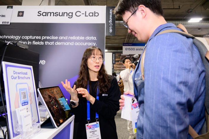 La exposición C-Lab en CES 2025 presentó 15 startups y proyectos, incluidos 12 de C-Lab Outside, el programa de Samsung para startups externas; dos proyectos de C-Lab Inside, que es un programa interno de incubación de ideas para empleados de Samsung; y una startup C-Lab Spin-Off, que se fundó tras su éxito dentro de C-Lab Inside.