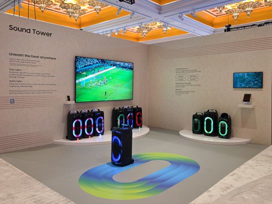 La configuración de pantalla grande demostró la tecnología Glare Free de Samsung, ofreciendo una inmersión combinada con la calidad de imagen Micro RGB y audio espacial. La experiencia reflejó la visión de Samsung de la TV como un Entertainment Companion.