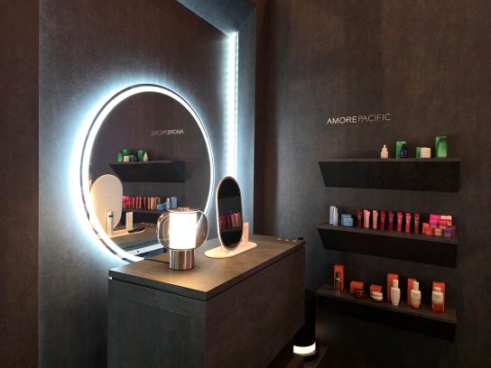 En la siguiente área, los visitantes entraron en un espacio modelado como un tocador donde un espejo circular se reveló como el AI Beauty Mirror. Impulsada por IA en el dispositivo (on-device AI), la tecnología señaló la expansión de la tecnología de Samsung al espacio de la belleza.