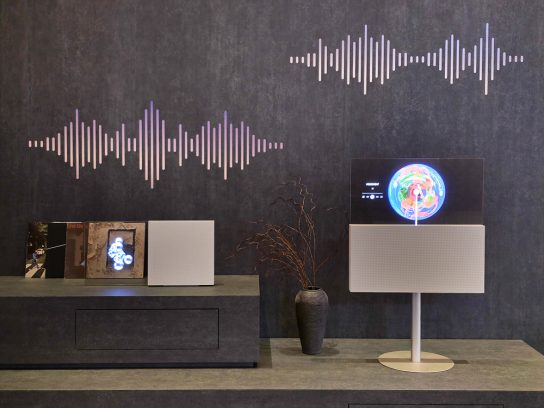 Una línea de dispositivos de audio visualmente impactantes añadió un fuerte elemento visual al stand. Reimaginando el tocadiscos, el Transparent Micro LED funcionó como un visualizador de música —asemejándose a un LP flotando en el aire— mientras que un sistema de sonido premium integrado garantizó que la calidad del audio no se viera comprometida.