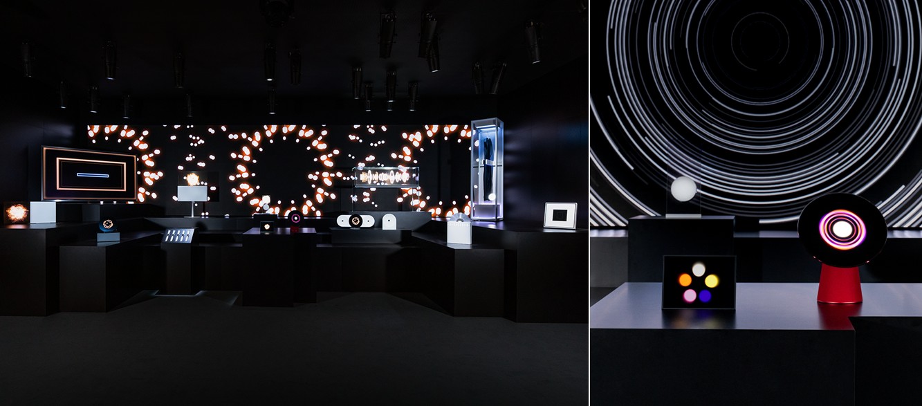 En ambos entornos, la IA genera contenido que se adapta al espacio, la música y el momento, ofreciendo desde atmósferas inmersivas hasta información, e incluso la presencia de un acompañante tras bastidores. En Two Expressions of the Same Technology (Dos expresiones de la misma tecnología), se presentan dos arquetipos de diseño de una pantalla Micro RGB de 130 pulgadas. Construidos sobre la misma tecnología innovadora, muestran cómo el rendimiento y la individualidad pueden coexistir.