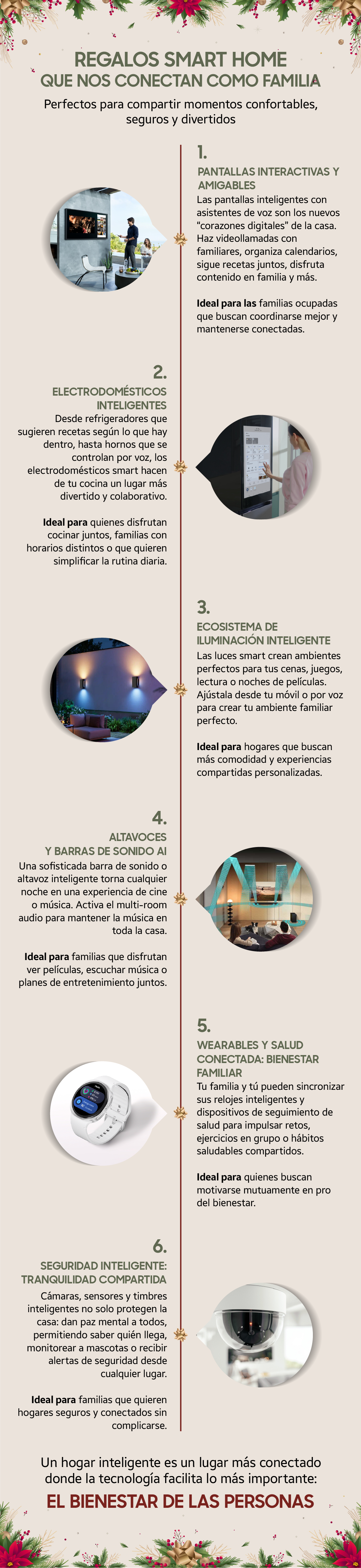 Más allá de la eficiencia y la seguridad, una casa conectada se convierte en una plataforma dinámica que promueve la interacción y el compartir. Las barras de sonido o altavoces con IA, por ejemplo, transforman una simple reunión en una experiencia inmersiva de entretenimiento, mientras que las pantallas inteligentes se vuelven centros de comando compartidos para organizar agendas, realizar videollamadas con familiares lejanos o seguir una receta juntos en la cocina. Los dispositivos conectados e inteligentes, que te sugerimos en la siguiente guía de regalos, facilitan la creación de un espacio donde la innovación suma confort, salud y momentos memorables para todos en el hogar.