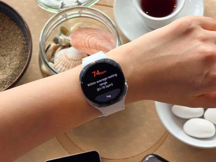 ▲ Frecuencia cardíaca monitoreada en tiempo real con Galaxy Watch8