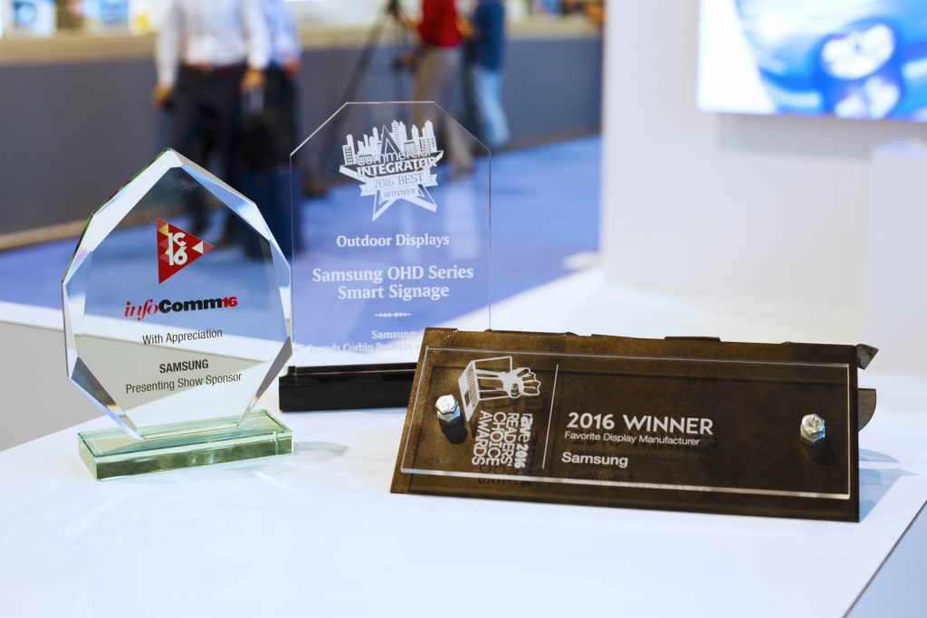 Samsung Electronics is the proud recipient of four prestigious industry awards distributed during the annual InfoComm tradeshow, held June 4-10 at the Las Vegas Convention Center. The company was honored for its innovation and leadership in the visual display and integrated audio/visual (AV) arenas, earning recognition from programs sponsored by Commercial Integrator, Newbay Media, rAVe Publications and Rental & Staging Systems.