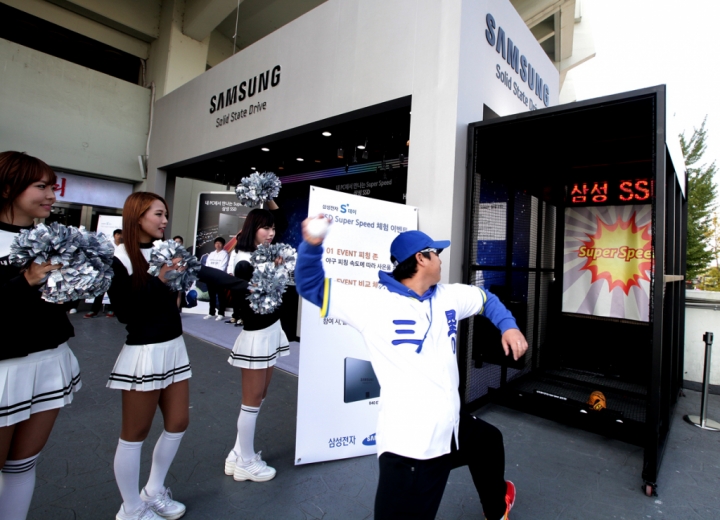 Samsung Electronics starts ‘Samsung SSD Super Speed Zone’ event at Jamsil Baseball Stadium during 2013 MBL Korea Series from the 27th for its customers to enjoy first-hand experience of the fast data process speed of Samsung SSD. The event consists of three parts: Pitch, Catch, and Clamor for the Ball at Super Speed.
