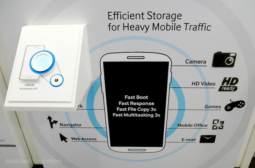 Samsung’s exclusive memory exhibit at MWC gave partners and visitors an in-depth view of the advancements in mobile, device and PC memory solutions. Samsung focused their displays on LP DDR, SSD, eMMC, eMCP, ePOP, memory cards and leading-edge embedded storage for smartphones and tablets.