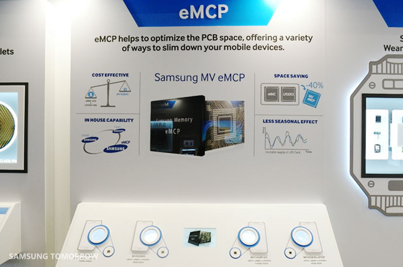 Samsung’s exclusive memory exhibit at MWC gave partners and visitors an in-depth view of the advancements in mobile, device and PC memory solutions. Samsung focused their displays on LP DDR, SSD, eMMC, eMCP, ePOP, memory cards and leading-edge embedded storage for smartphones and tablets.