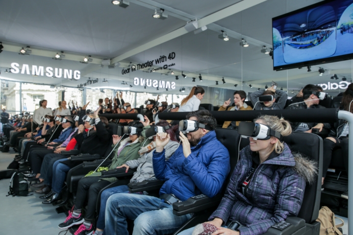 [Photo] Barcelonians Take the Ride of Their Lives at Samsung’s 4D Theater with Gear VR at Catalonia Square