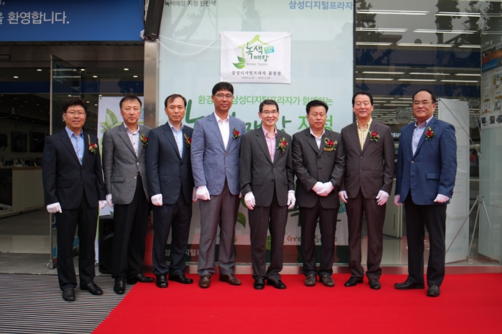 Samsung Electronics’ five Digital Plaza branches won the ‘Green Store’ certificates from the Ministry of Environment for the first time as a home appliance distributor. The Ministry of Environment has been issuing certificates of ‘Green Stores’ to those contributed to eco-friendly products sales, energy saving, reducing green house gas emission, and green consumerism since 2010 and has expanded it from supermarkets and small retailers selling organic agricultural produce.