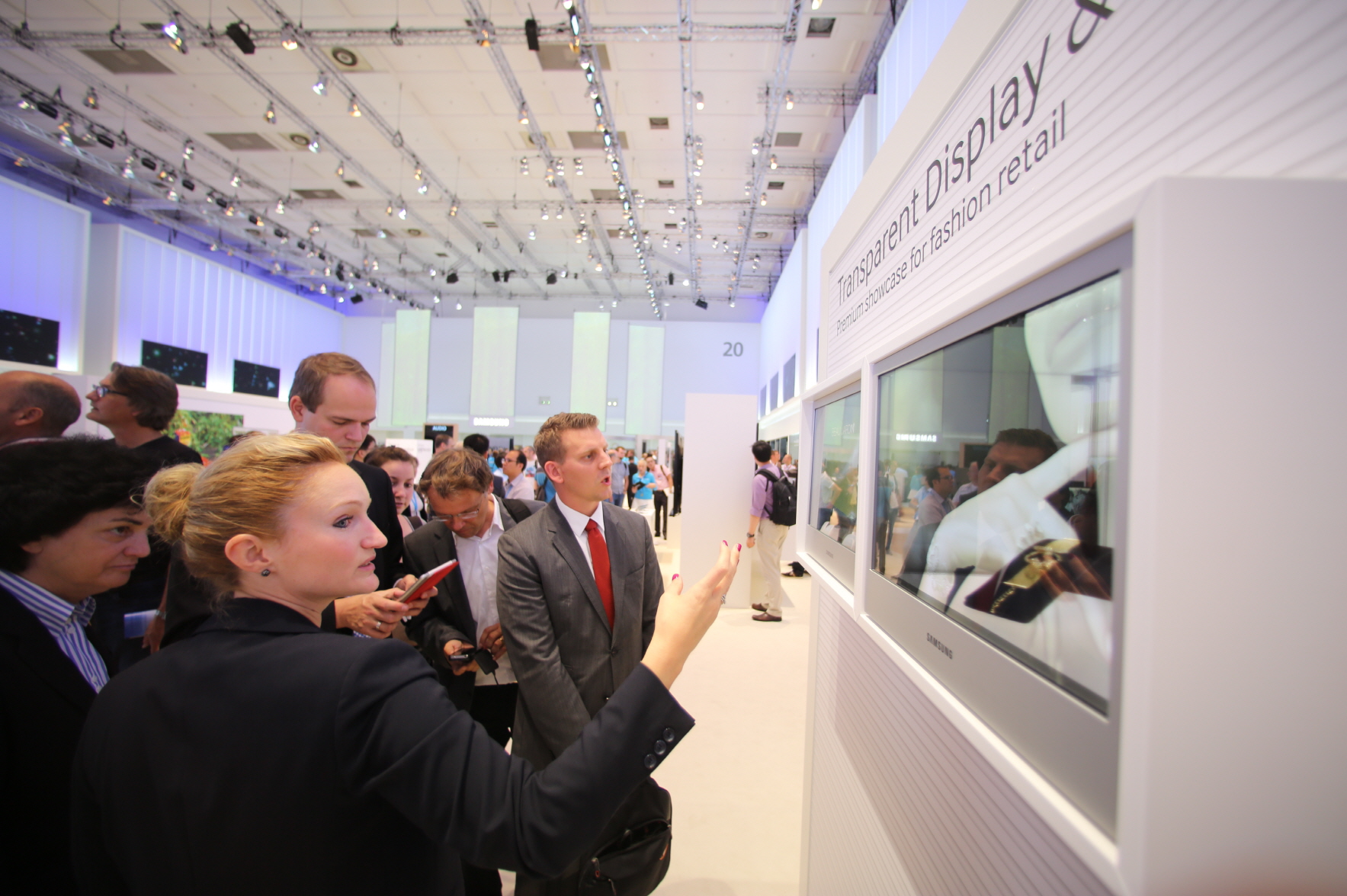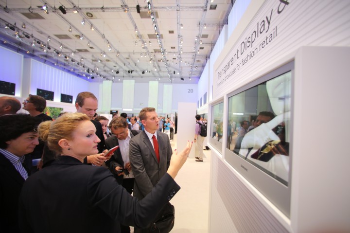 Audiences are taking a look at transparent display presented in Samsung Electronics booth at IFA 2013 in Berlin Germany on the 6th