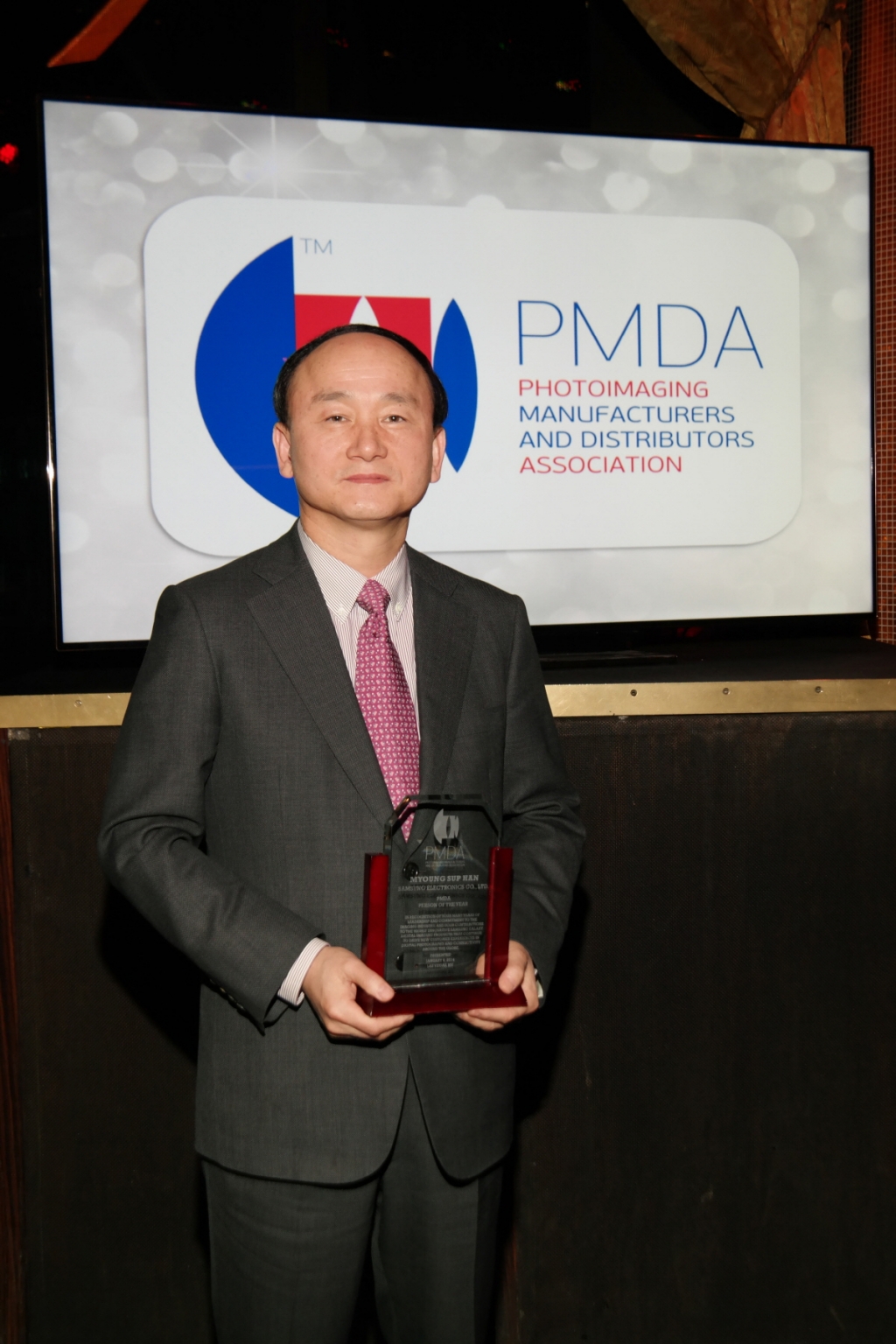 삼성전자 이미징사업팀 한명섭 부사장이 6일(현지시간) 미국 라스베이거스에서 열린 PMDA(PhotoImaging Manufacturers and Distributors Association)의 시상식에서 '올해의 인물(Person of the Year)' 상을 수상했다. 미국 PMDA는 카메라 업계에 공적을 남긴 인물을 선정해 매년 CES 기간에 시상식을 진행하며, 스마트 카메라로 업계에 새로운 지평을 열었다고 평가받는 삼성전자의 이미징사업팀장을 '올해의 인물'로 선정했다.