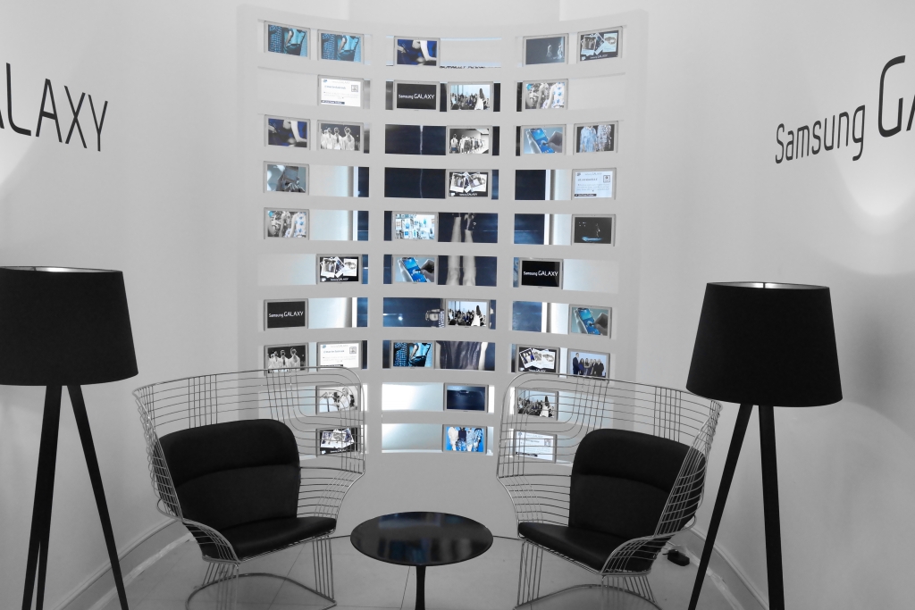 2014년 A/W 런던 패션위크 '삼성 갤럭시 VIP 라운지'에 설치된 태블릿 월