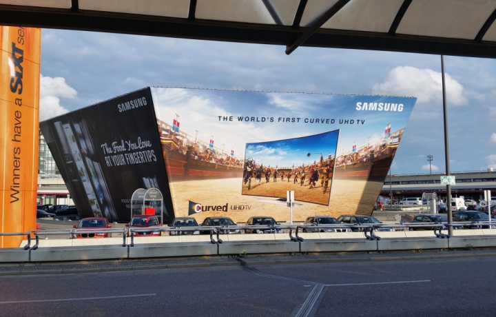 Samsung Electronics is embracing visitors at IFA 2014 with colorful outdoor ads for its Curved UHD TV, Chef Collection and Crystal Blue washing machine at various sites such as Berlin International Airport in Tegel, Potsdamer Platz and CityCube Berlin.