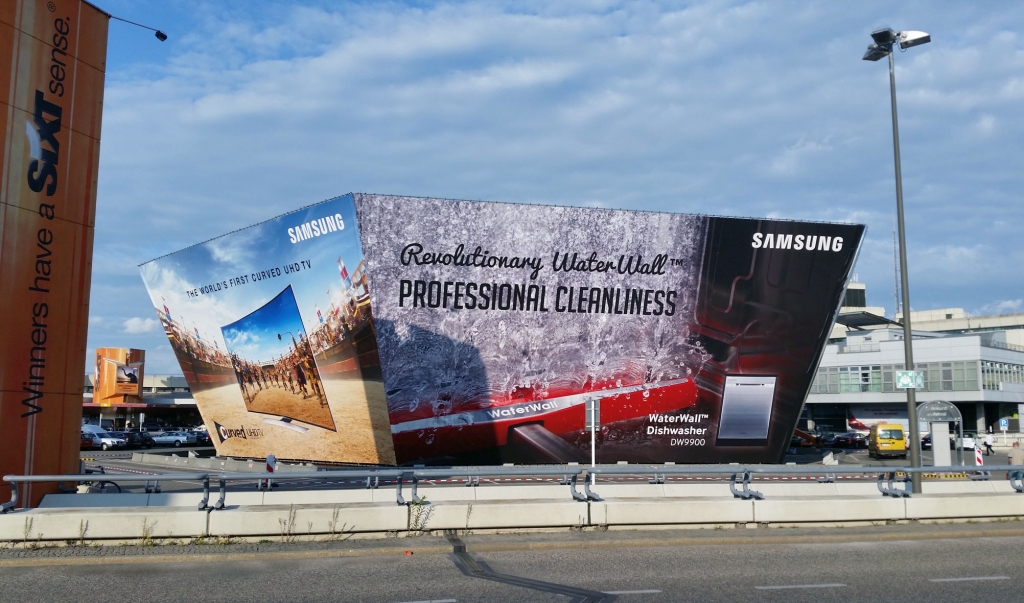 Samsung Electronics is embracing visitors at IFA 2014 with colorful outdoor ads for its Curved UHD TV, Chef Collection and Crystal Blue washing machine at various sites such as Berlin International Airport in Tegel, Potsdamer Platz and CityCube Berlin.