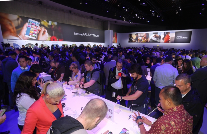 삼성전자가 3일(현지시간) 독일 베를린에서 열리는 'IFA 2014' 개막에 앞서 전 세계 미디어 1,500명 이상이 참석한 가운데 '삼성 언팩' 행사를 갖고 '갤럭시 노트4'를 공개했다. '갤럭시 노트4'는 2011년 5형대 대화면과 S펜을 탑재해 새로운 모바일 카테고리를 창출한 '갤럭시 노트' 시리즈의 4번째 모델로, 공개 전부터 전 세계 미디어와 소비자들의 관심을 집중시켰다 삼성전자는 그 동안 '삼성 언팩' 행사를 통해 새로운 카테고리의 혁신적인 신제품을 지속 소개해온 바와 같이 올해에도 신제품을 대거 선보였다. 기대를 모았던 '갤럭시 노트4'를 비롯해 커브드 엣지 디스플레이를 탑재한 '갤럭시 노트 엣지', 연동된 스마트폰과 멀어져도 통신이 가능한 '삼성 기어S', 가상현실 헤드셋 '삼성 기어 VR', 목걸이형 웨어러블 기기 '삼성 기어 서클'을 선보였다.