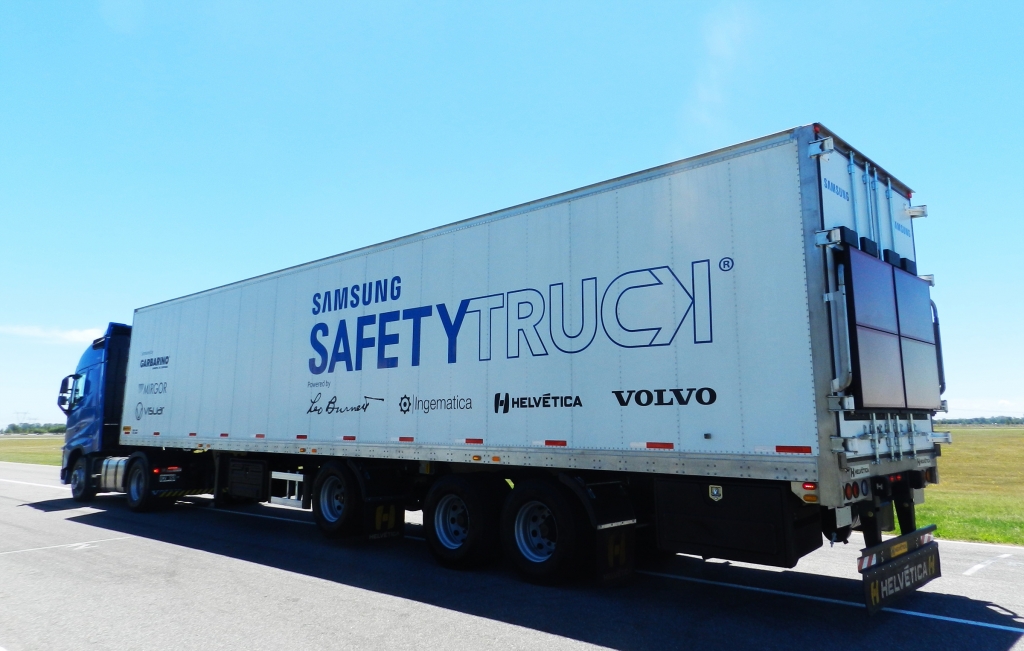 Samsung Electronics Argentina unveiled to the public the first Samsung Safety Truck, a technology for trucks which seeks to prevent road accidents inovertaking situations on roads.